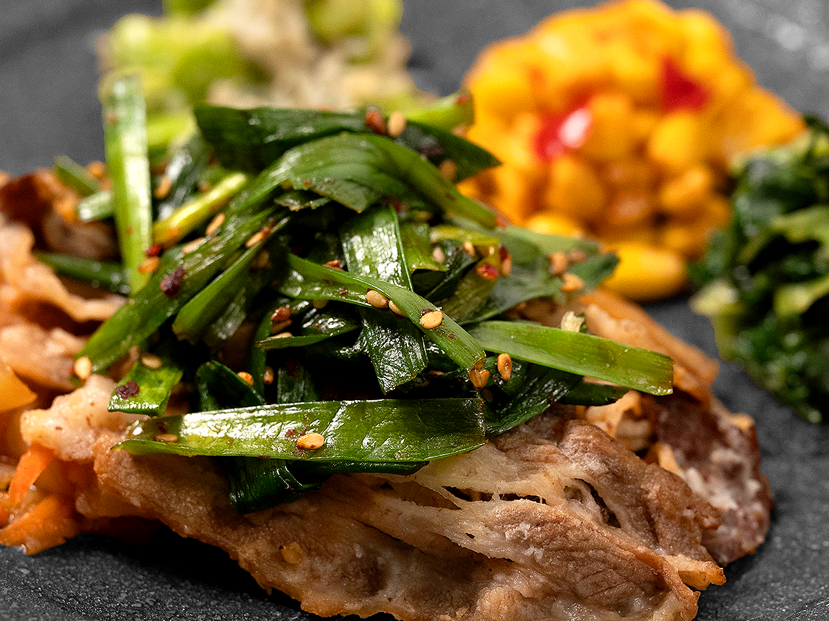 薄切りの牛バラ肉の下にキャベツ、人参を敷き、甘辛く味付けしたニラをトッピングいたしました。お肉はもちろん、野菜もモリモリ食べられるプレートです!コチュジャンの辛味と、炭火焼肉たむら特製だれの抜群の相性をお楽しみください。