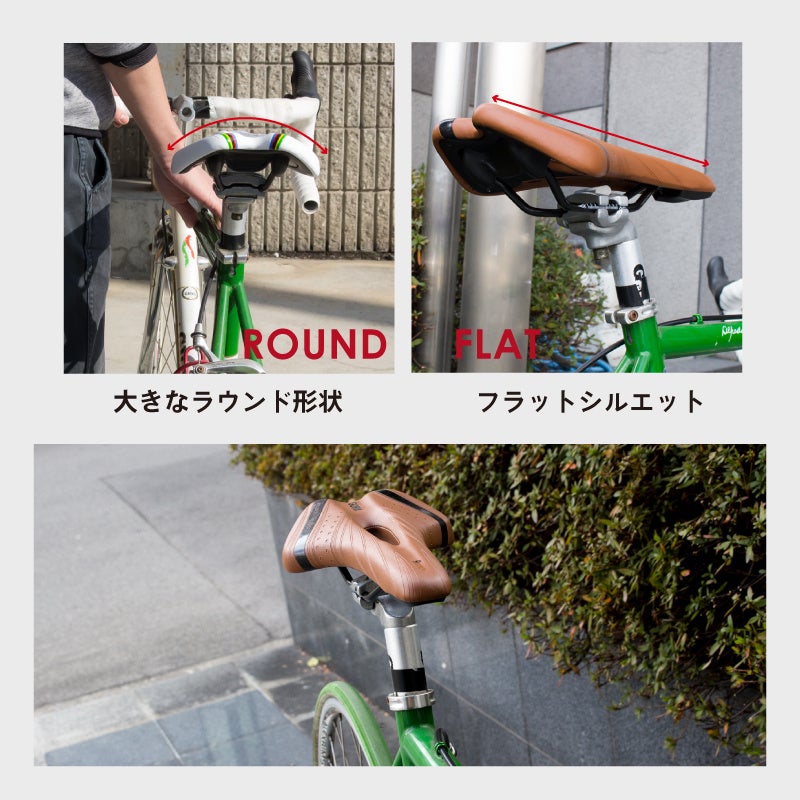 スポーティなデザインとフラットシルエット。バックは大きなラウンド形状で安定して長く座れる、柔らかい低反発タイプのサドルです。自転車全般、ロードバイク、マウンテンバイク、クロスバイク、ミニベロなどに。