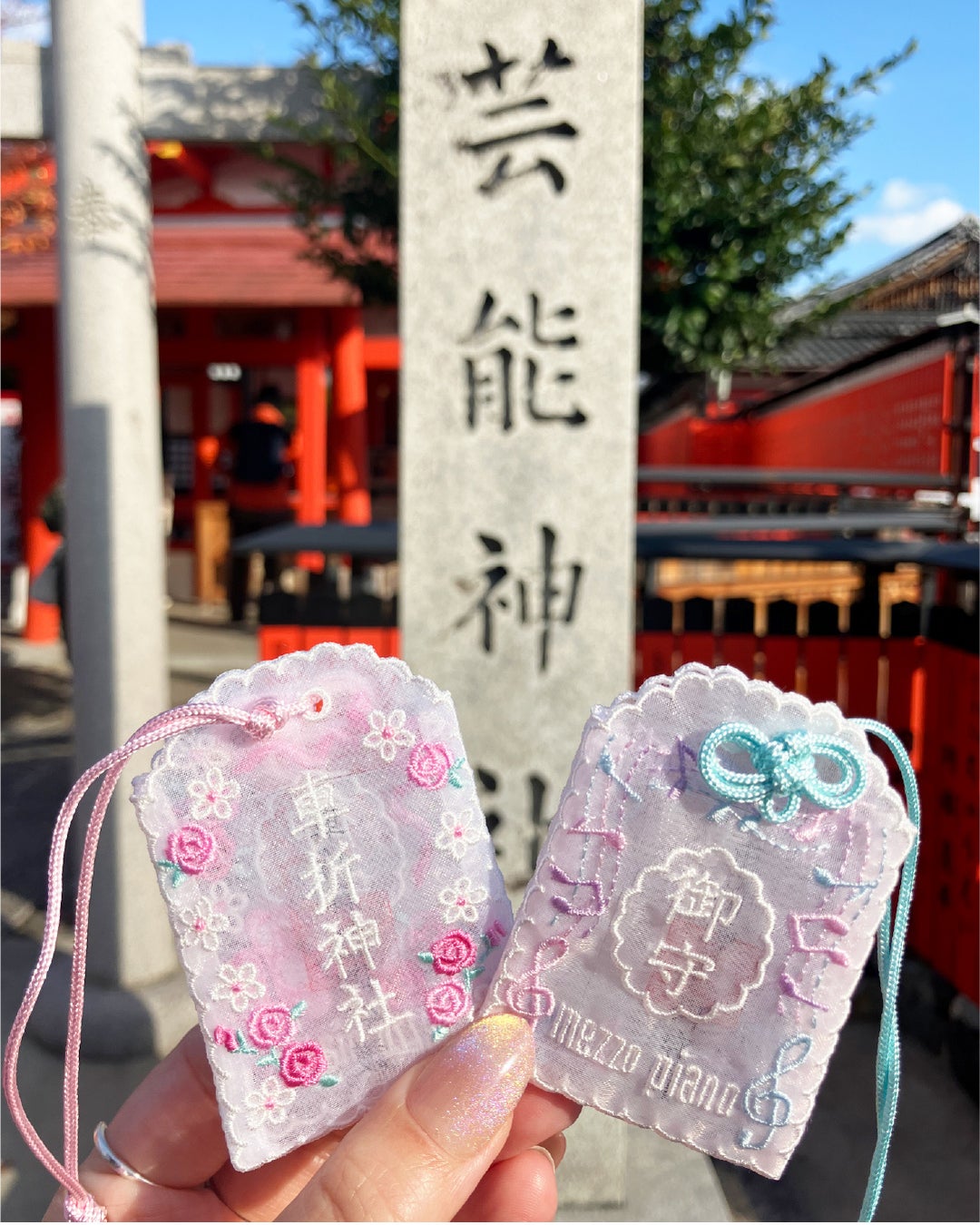 京都・嵐山の車折神社にてご祈祷していただいた「芸事お守り」