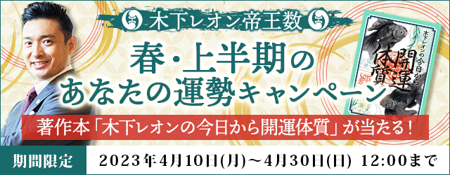 フジテレビ系列で放送中の占い番組『突然ですが占ってもいいですか?』で人気を博している木下レオン。ただいま、月額公式サイト『木下レオン◆帝王数』にて、この時期のあなたの運勢が分かる『春・上半期のあなたの運勢キャンペーン』を開催中です。