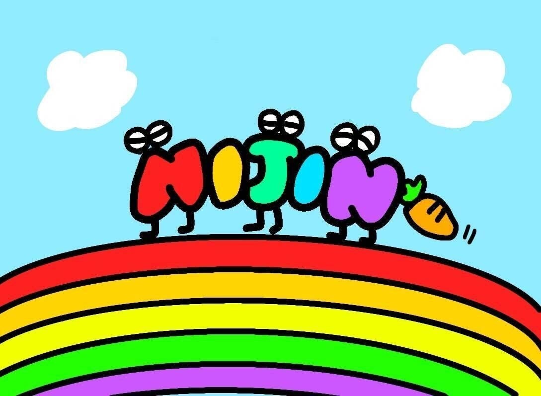 アルファベット一文字一文字が【つながる】ことで、単語になり意味を持てるように、 個性を持った僕らも、一人一人がつながればきっといろんな世界が広がります! ニジンアカデミーに集まっているみんなをイメージしながら描きました。 ちょっと眠そう…だけど、時にはぶつかったり、泣いたり、笑ったりしながら、虹の上を楽しく進もう! ニーは歩くの大好き、ワクワク ジーはおっとり、ネムネム ンーは甘えん坊、ルンルン お気にいりのニンジンといつも一緒です。(作成者のコメント)
