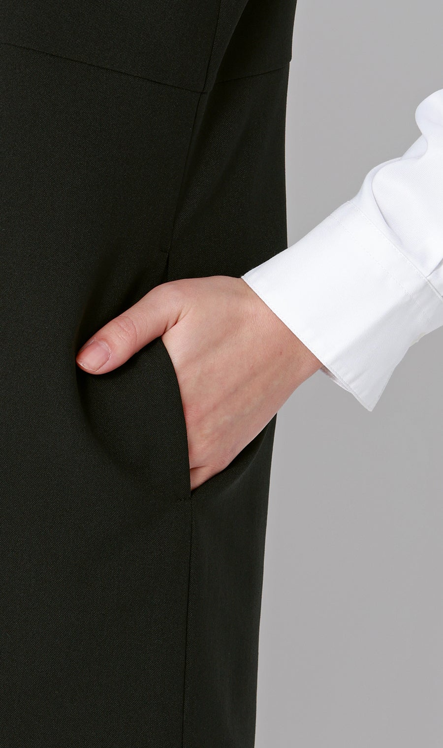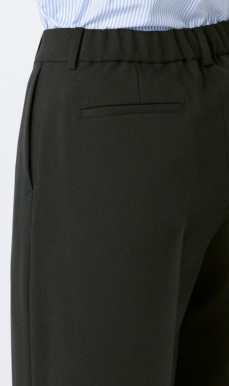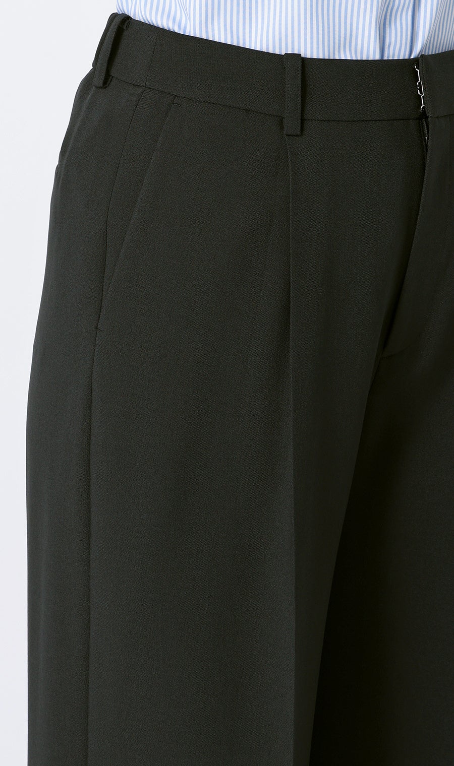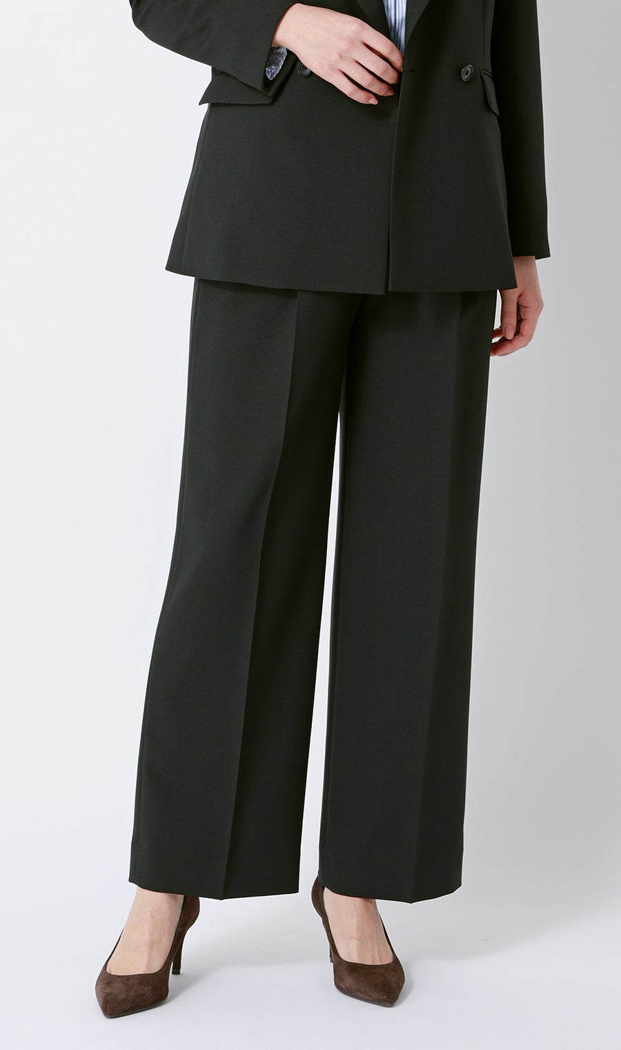 本企画は、ダブルジャケット、ワイドパンツ、キャミワンピースを用意。洋服の青山で初めて取り扱うキャミワンピースは、シンプルなトップスと合わせれば仕事(ビジネス)、ボウタイなど華やかなトップスと合わせれば式典(オケージョン)、ニットと合わせれば日常使いと着回し力抜群のアイテムです。ジャケットは、程よいゆとり感をもたせたダブル仕様。パンツは太すぎないワイドシルエットにしている他、センタークリースを施しており、足がまっすぐきれいに見えます。また、適度な光沢感とさらっとした風合いを持つ生地を採用することで、かっちりしすぎず、程よい抜け感を演出する着回し力抜群のセットアップです。