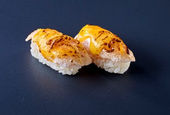 そして、一番人気の牛&豚プレミアムコースの一品メニューにも新商品が仲間入りしました!!その中でもお寿司ジャンルでは、「炙り寿司」シリーズに「炙りチーズ」が新登場♪炙りチーズのサーモン/ローストビーフ/海老/玉子にぎりの4種類をお楽しみいただけます。さらに手巻き寿司に海老天にぎりが食べ放題になりました。1つ1つ丁寧に揚げたサクサクの海老天を手巻き寿司でお楽しみください。