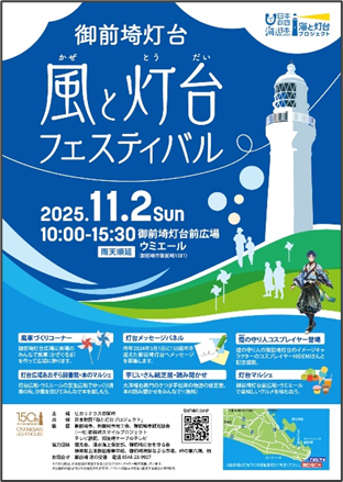 コンソーシアム ヒカリテラス御前崎は、2025年11月2日に御前埼灯台や海を眺め、風を感じながら1日ゆっくり楽しめるイベントを目的として、「風と灯台フェスティバル2025」を開催いたしました。このイベントは、日本財団「海と日本プロジェクト」の一環として、灯台を中心に地域の海の記憶を掘り起こし、地域と地域、異分野と異業種、⽇本と世界をつなぎ、新たな海洋体験を創造していく「海と灯台プロジェクト」の助成を受けて実施したものです。