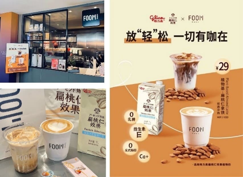 中国では、2021年8月から「アーモンド効果」の販売を開始しました。健康意識の高まりを背景に、“植物たんぱく飲料市場”は過去10 年で大きく成長※3していますが、アーモンドミルクの市場はまだほとんどありません。生活者のみなさまに「アーモンド効果」のもつ様々な魅力をお伝えしていくため、2022年は人気カフェ「FOOM」とのコラボメニューの販売やECサイトを通じたオンラインキャンペーンを実施しました。「アーモンド効果」が中国での植物性ミルク市場を牽引していけるよう、これからも成長を加速させていきます。