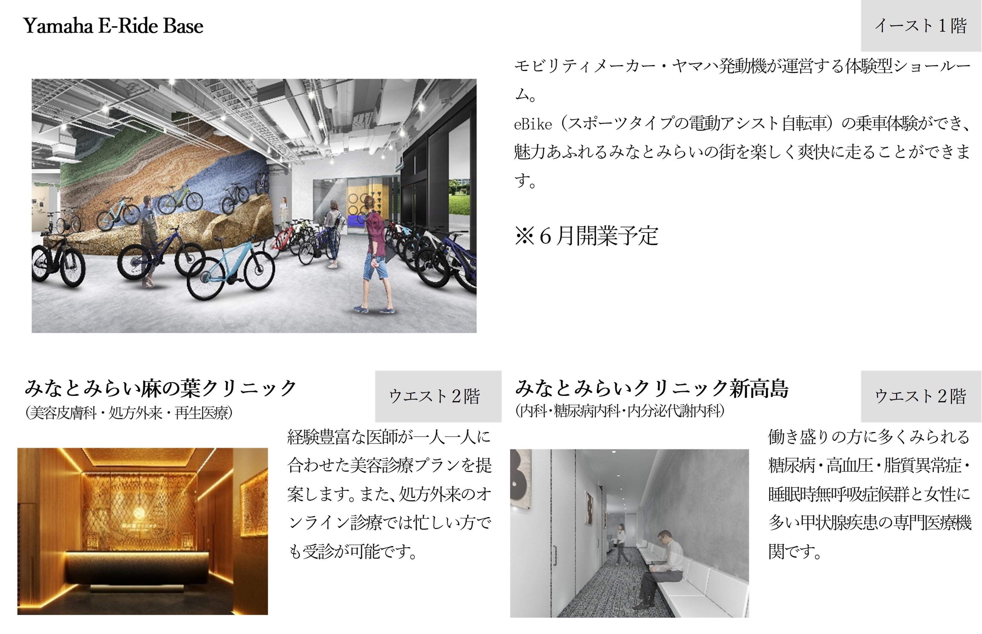 今後、低層部商業ゾーンとオープンイノベーションオフィス「chilink WORKSITE MINATOMIRAI」は2024年5月9日、ヤマハの体験型「ブランドショップ」は2024年6月初旬、「京急EXホテル みなとみらい横浜」は2024年6月24日に、順次開業します。