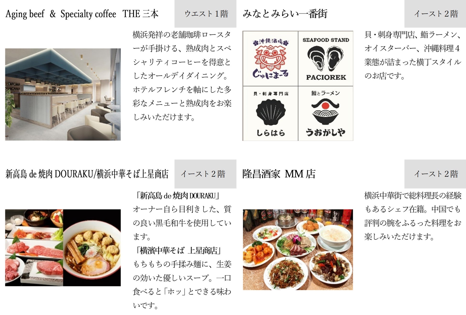 各店の詳細や営業時間は、横浜シンフォステージ公式WEBサイトをご覧ください。