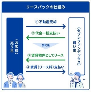 ※リースバックとは、所有者が不動産を売却してもそのまま住み続けることができる制度です。売却により現金化が可能となり、その後も引っ越しをせずに同じ生活を続けることができます。
