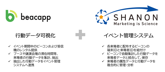 従前、イベント来場者の行動履歴取得の際はQRコードの読み取りなど、来場者自身の自発的な接触・登録が必要でした。今回の連携により、来場者の行動履歴をビーコンによって非接触でストレスなく取得可能になり、これまで以上に顧客リレーションの強化やイベントの質の向上が実現できます。