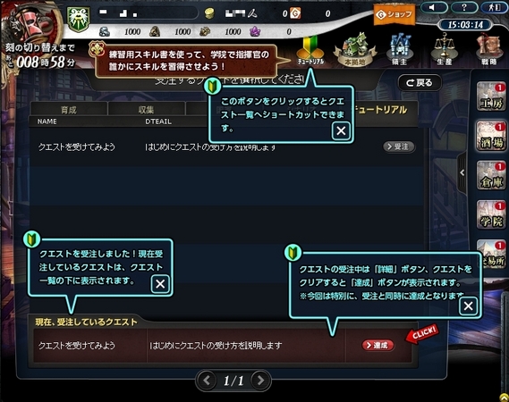 「ラングリッサー・トライソード」の世界に入って、右も左もわからない場合には、まず「チュートリアル」をプレイしてみましょう。どのようにゲームを進めればいいかをわかりやすく説明してくれます。ゲームの肝となる「戦争」に関わる説明は、「領主」として戦っていくにあたり必須となるので必見です。