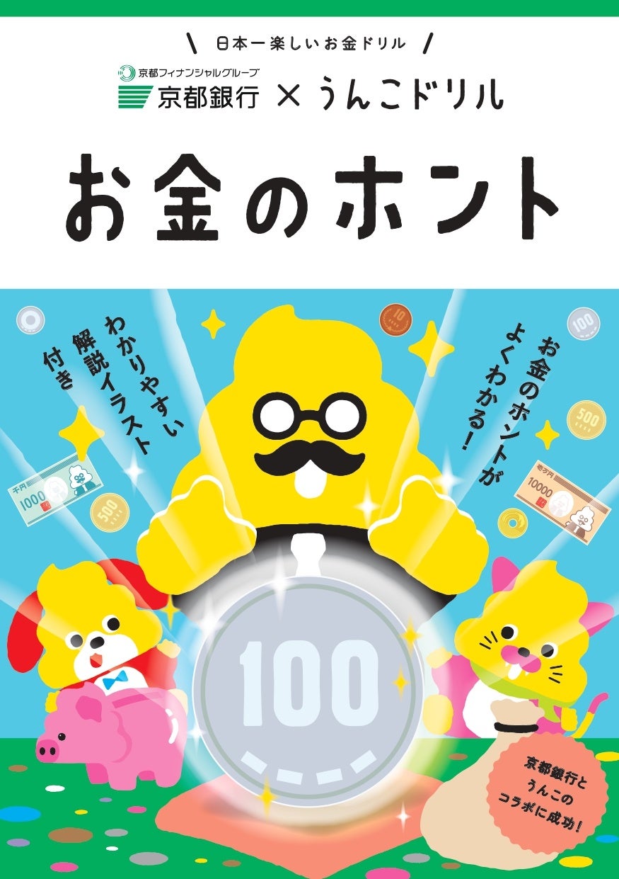 京都府を中心に地域密着型の金融サービスを提供する地方銀行、株式会社京都銀行が、次世代を担う子どもたちにお金の知識を伝えたいという想いから、「うんこドリル」シリーズと初コラボ。