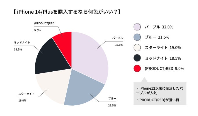 - 調査結果①iPhone 14/Plusで一番人気が高いカラーはパープル!