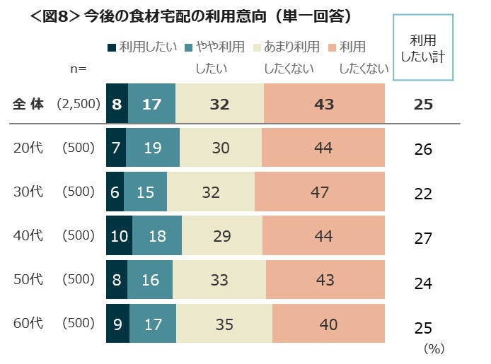 今後の利用意向は、全体で25%であり、年代による大きな差は見られない。<図8>