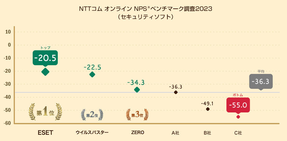 セキュリティソフトを対象としたNPS®ベンチマーク調査2023の結果を発表。NPSおすすめランキング1位は7年連続でESET