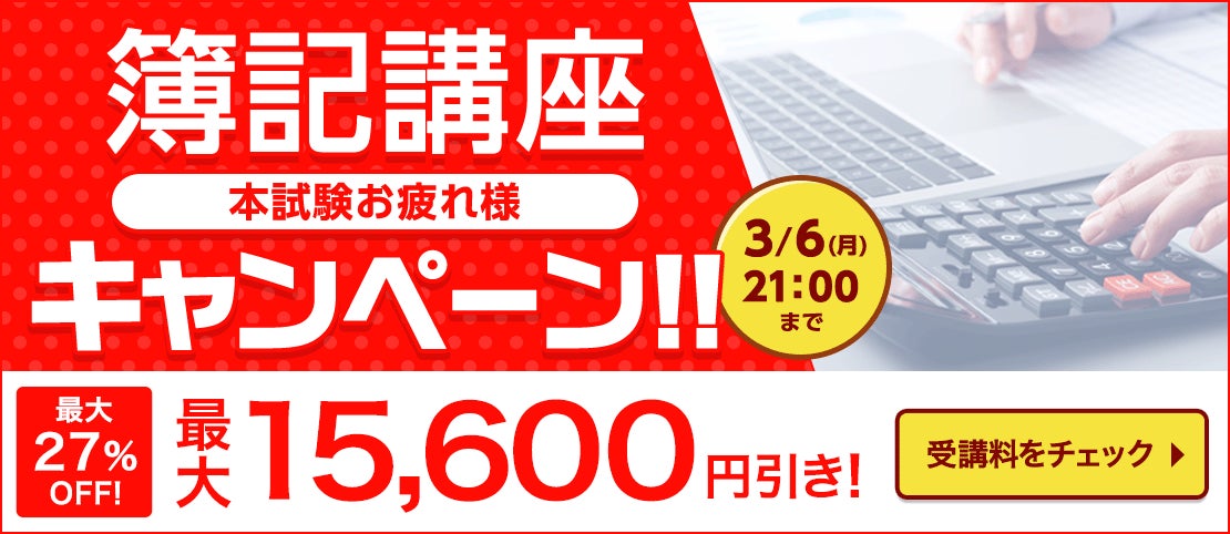 【簿記講座】本試験お疲れ様キャンペーン 実施中