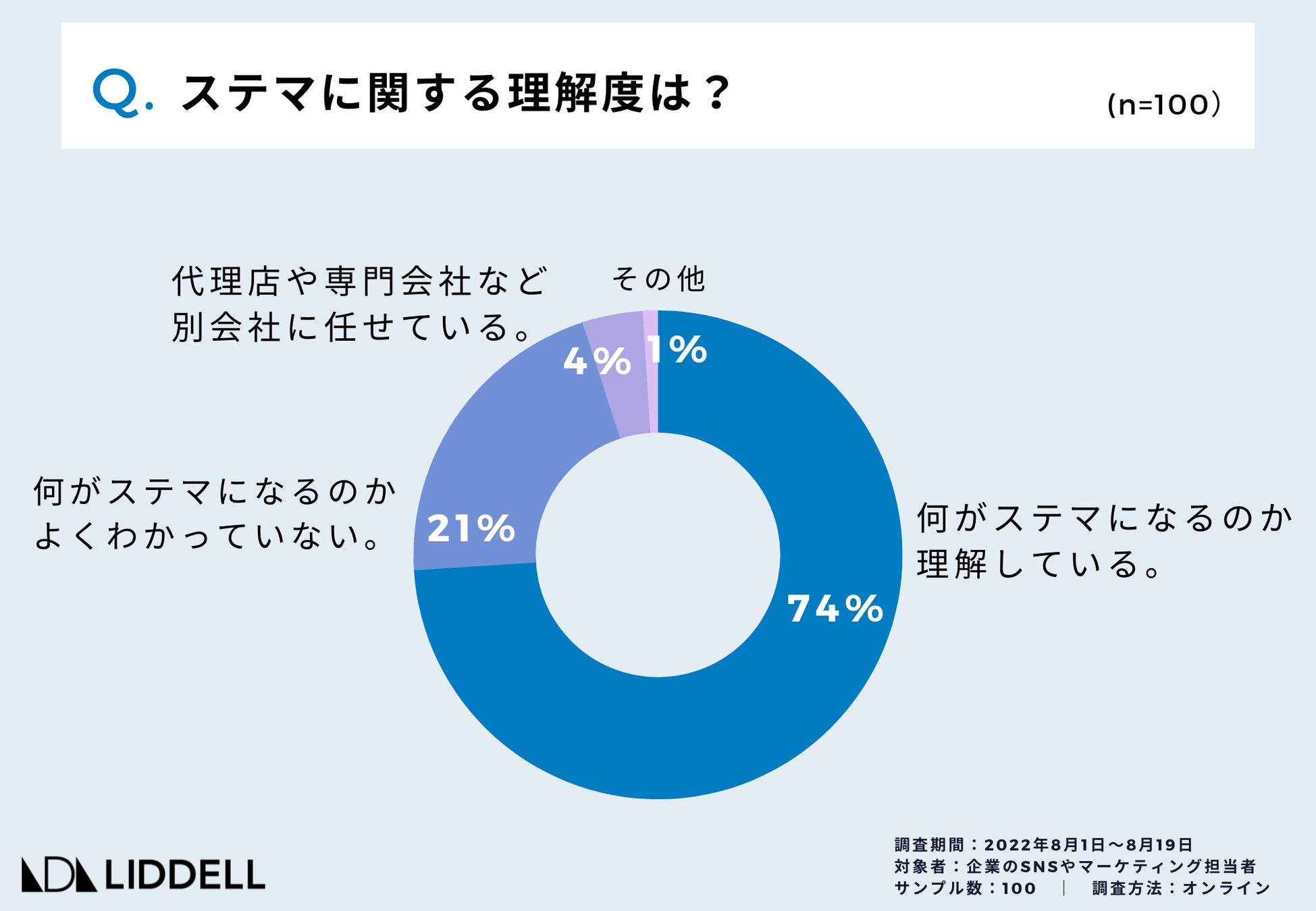 企業のSNSやマーケティング担当者の74%が「何がステマになるのか理解している」と回答