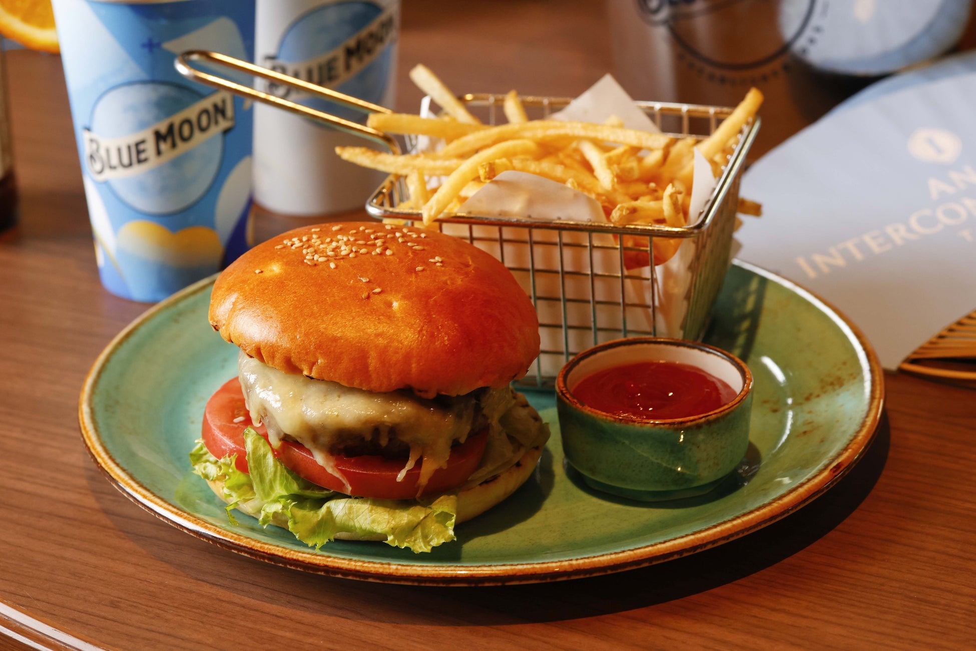 今回のプランでは、同ホテルのロビーラウンジ「アトリウムラウンジ」にて、オレンジピールやコリアンダーが香るホワイトエールビール「BLUE MOON」と旨味あふれる和牛パティにチーズを重ねた特製バーガーのペアリング体験をゆったりとお愉しみいただけます。とろけるチーズと和牛の濃厚な旨味に、オレンジピール香るBLUE MOONが爽やかさをプラスします。暑い夏の日にぴったりの、この夏だけの贅沢なペアリングをぜひお試しください。