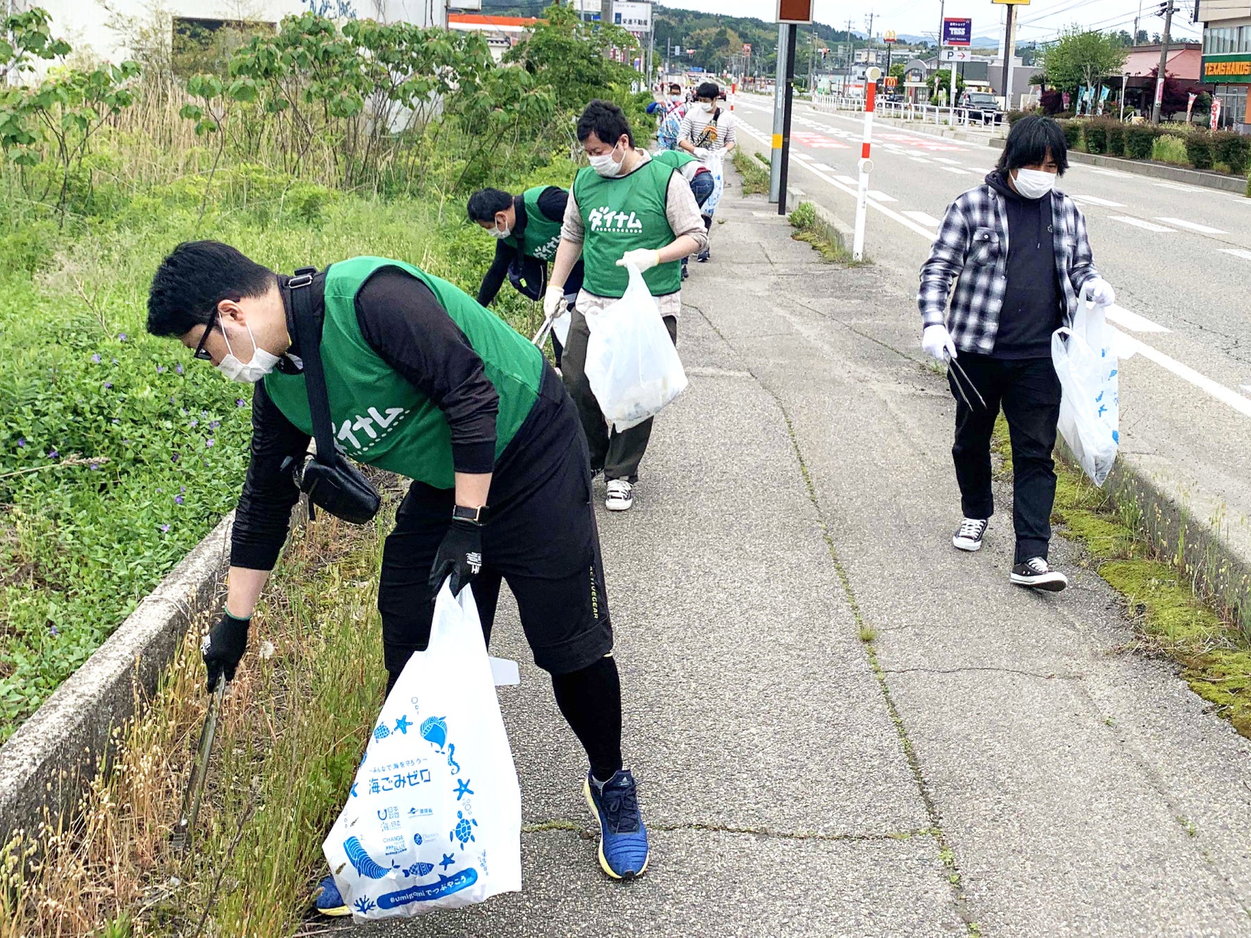 今回の活動は、SDGsの観点から「住み続けられるまちづくり」へ貢献するため、ダイナム氷見店の従業員5人が地域清掃活動に参加しました。主催団体である富山応援隊の活動では、ゴミを回収し発生原因を明確にすることで抑制・排除を目指しており、県内の様々な市町村で同様の取り組みを展開しています。
