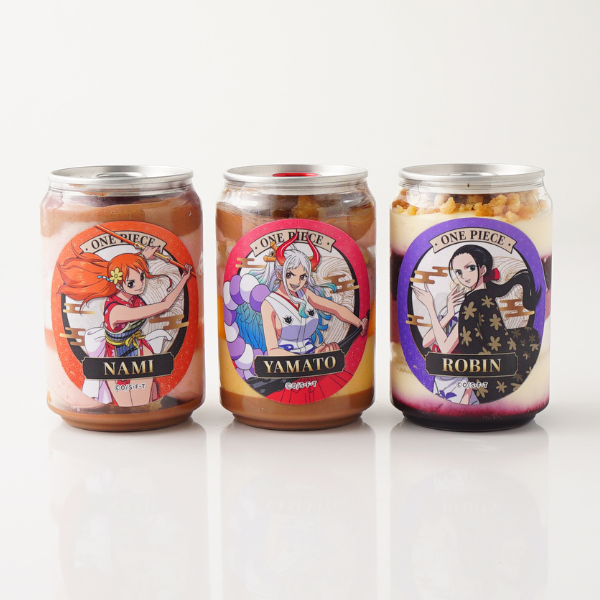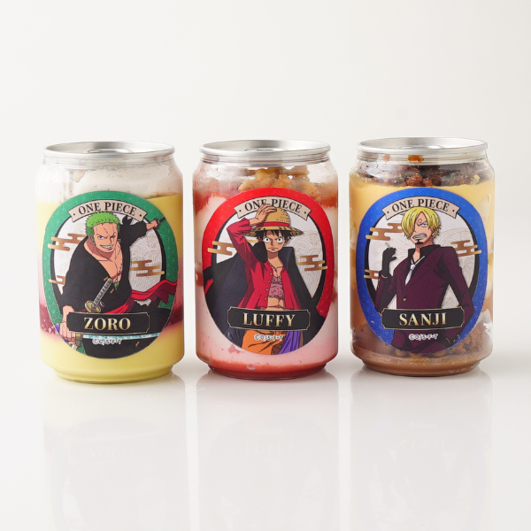 Cake.jpは、TVアニメ『ONE PIECE』とコラボし、ルフィをはじめとする大人気キャラクター8名がそれぞれプリントされた「ケーキ缶」を販売します。ケーキ缶のラベルは、現在放送中の「ワノ国編」のイラストを元にデザインした、Cake.jpオリジナルデザインとなっています。