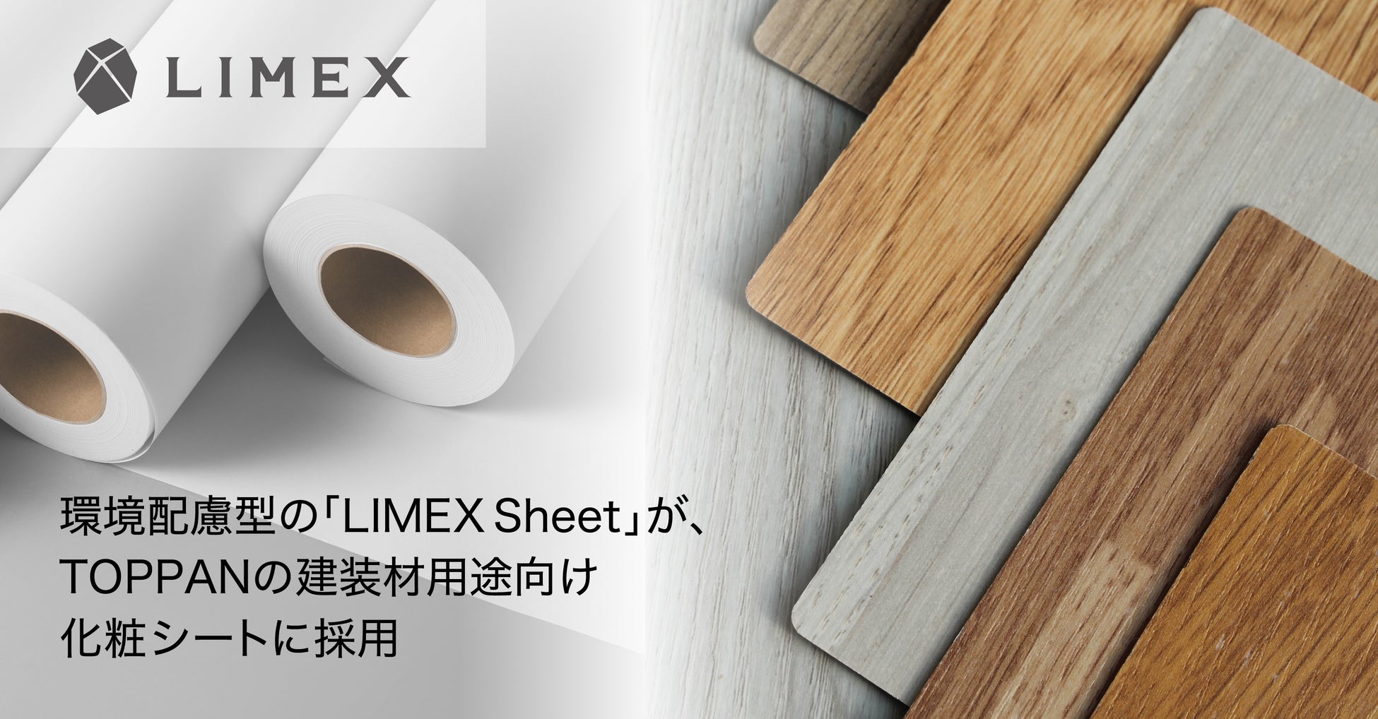 株式会社TBM(本社:東京都千代田区、代表取締役CEO:山﨑敦義、以下TBM)は、環境配慮型の「LIMEX Sheet」が、TOPPANホールディングスのグループ会社であるTOPPAN株式会社(本社:東京都文京区、代表取締役社長:齊藤昌典、以下 TOPPAN)の建装材用途向けの化粧シートの基材に採用されたことをお知らせします。本採用は、「LIMEX Sheet」を使用した化粧シートとして初の事例となります。