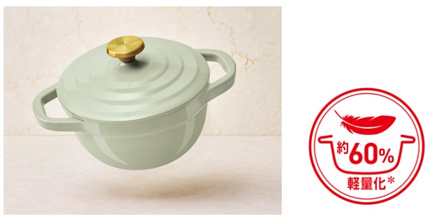 ※1 一般的な同サイズの鋳鉄製ホーロー鍋の約60%軽量化。 2025年7月時点、自社調べ、自社海外販売製品Heritageシリーズのココット10cmとの比較。