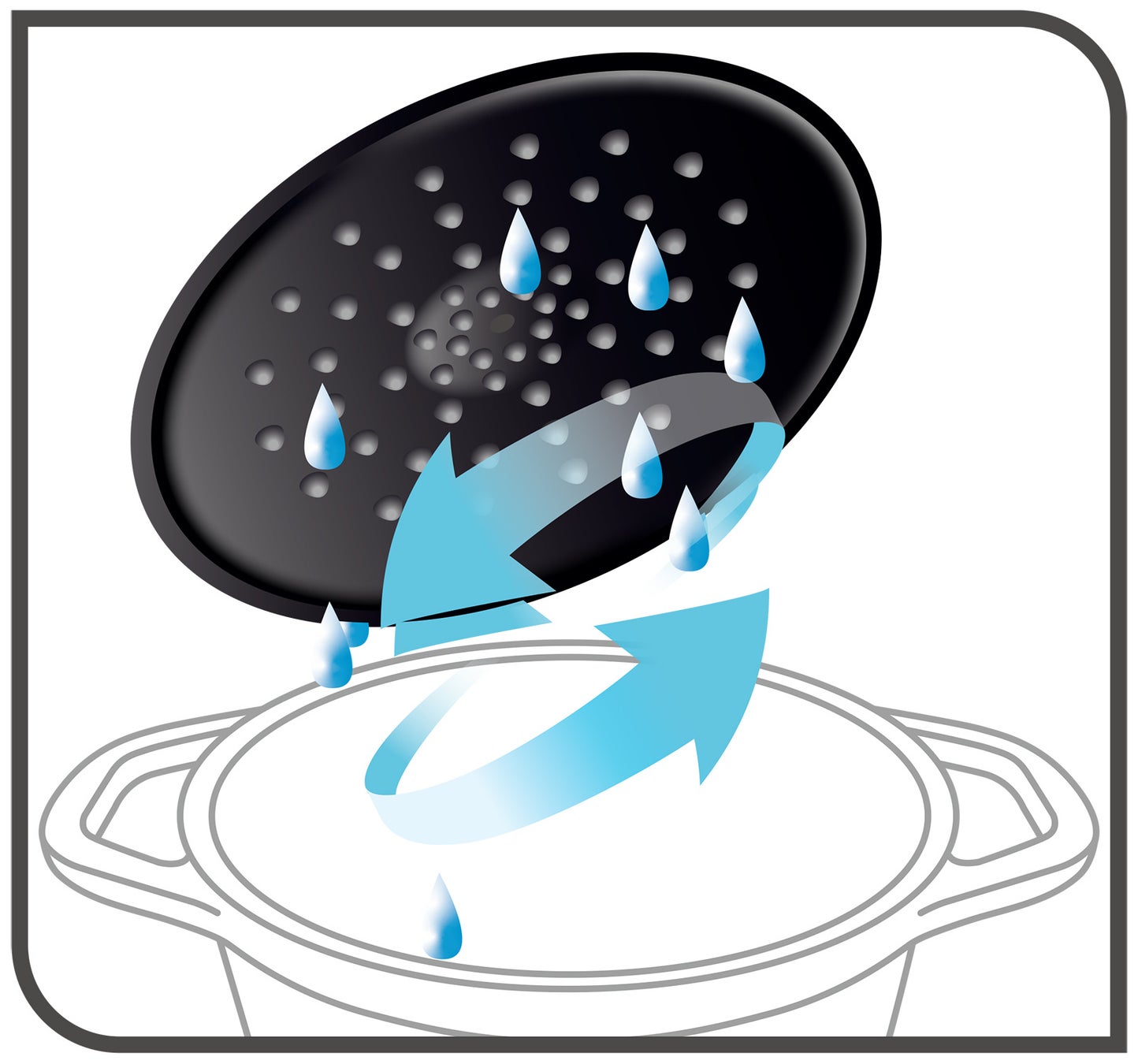 ふたを閉めたままオーブン調理が可能なので、料理の幅が広がります。ふたの内側には突起(ピコ)が付いていることで、ふたについた水分が満遍なくココットの中に落ち、素材の旨みをギュッと凝縮させて、料理を美味しく仕上げることができます。
