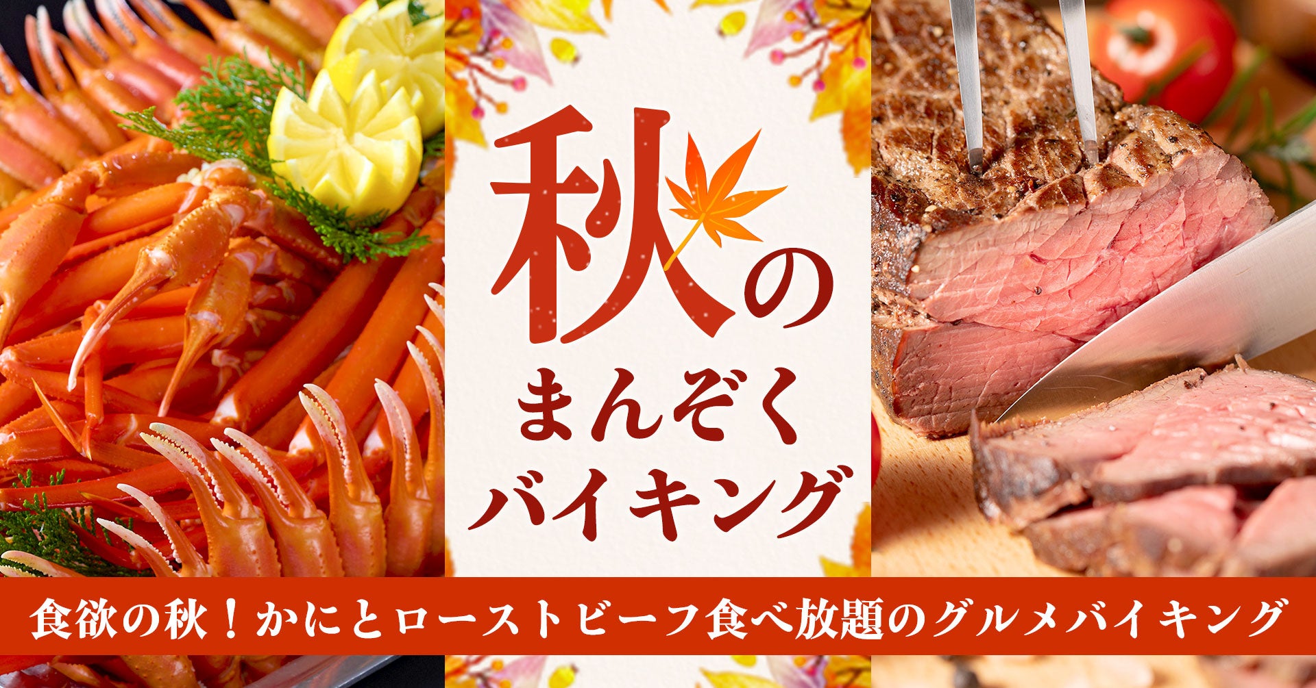 遅めの夏休みにお薦め。大江戸温泉物語、石川・福井県の3つの温泉宿で9月1日、かにとローストビーフが食べ放題の秋のまんぞくバイキングがスタート。