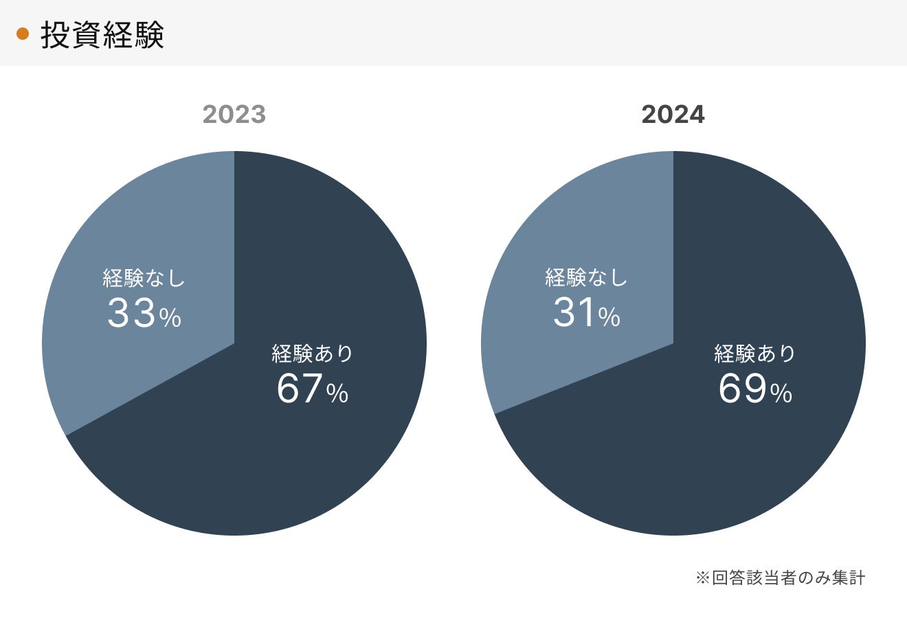成約顧客の投資経験は、成約時点で「投資経験あり」が69%(前年比2ptアップ)、「投資経験なし」が31%と回答しました。2024年度は4〜6月の顧客動向レポート(※3)で、投資経験ありの割合が過去最高の割合となったことから、経済全体の「貯蓄から投資へ」という機運が成約顧客にも広まっていることがわかります。