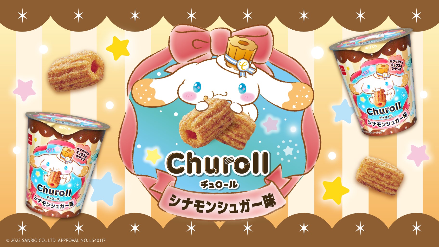 サンリオの「シナモロール」とコラボ!ひとくちサイズのチュロス風スナック菓子『チュロール(シナモンシュガー味)』