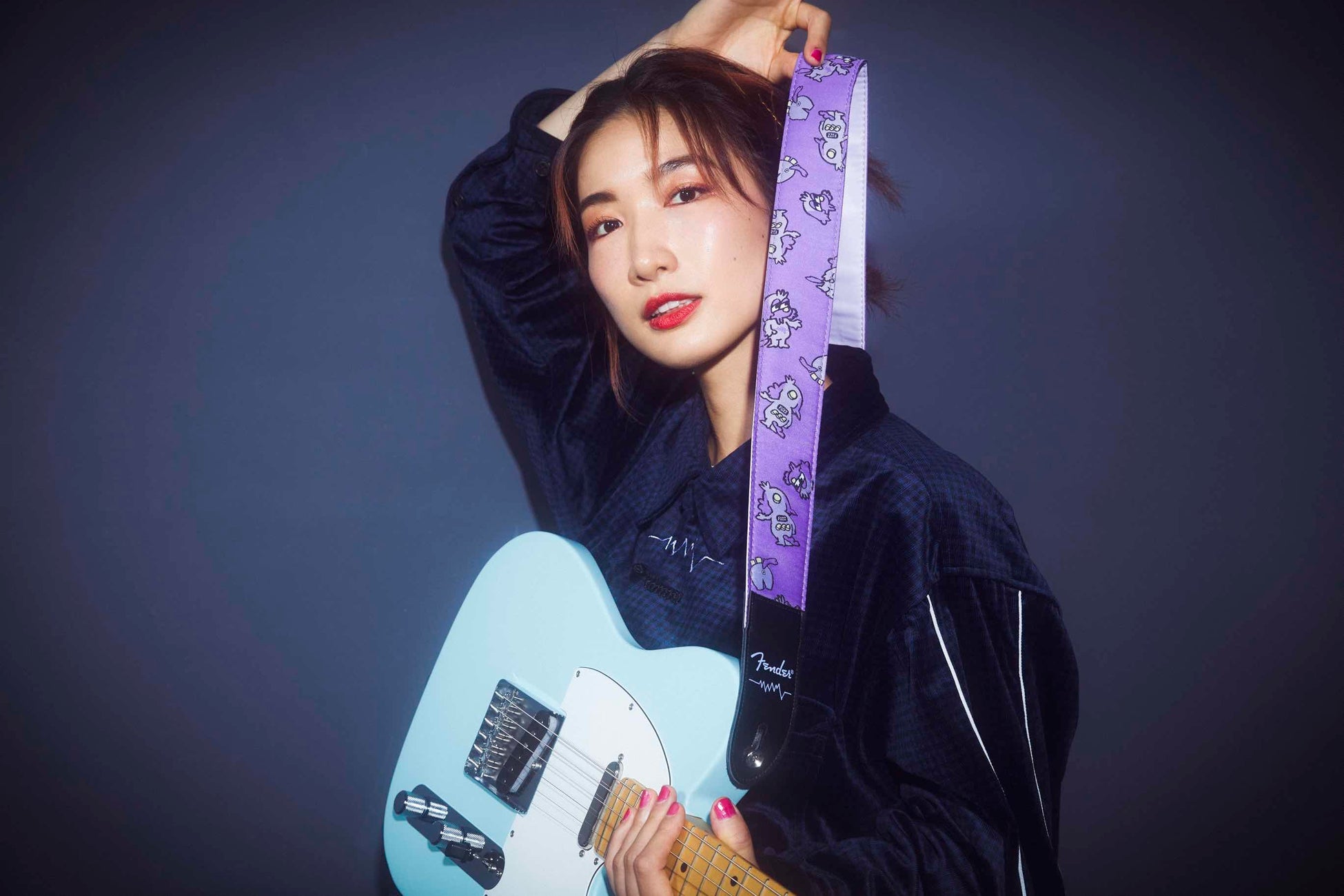「いつも使用させていただいているフェンダーとのブランドコラボができて、とても嬉しいです!この企画は、“ギターをもっと女の子に弾いてほしい“という願いのもとでデザインをはじめましたが、出来上がったものは友人の男性アーティストにも人気で、Nuefというキャラクターの可能性を感じました。私は、機材やアクセサリーを選ぶ時、いつも見た目から入るので、私のように今回作らせていただいたコラボアイテムがきっかけで楽器に興味を持ってくれる人がいたら嬉しいなと思います。ストラップは、自分のラッキーカラーである白藤色を使っていて、紫のストラップってあまり他で見たことがないような気がするのですが、実は何色にも馴染むので、ぜひ皆さんの愛機と合わせてみてほしいです。可愛いNuefの姿が描かれたピックは、デザイン面も機能面もすごく気に入っています!!」