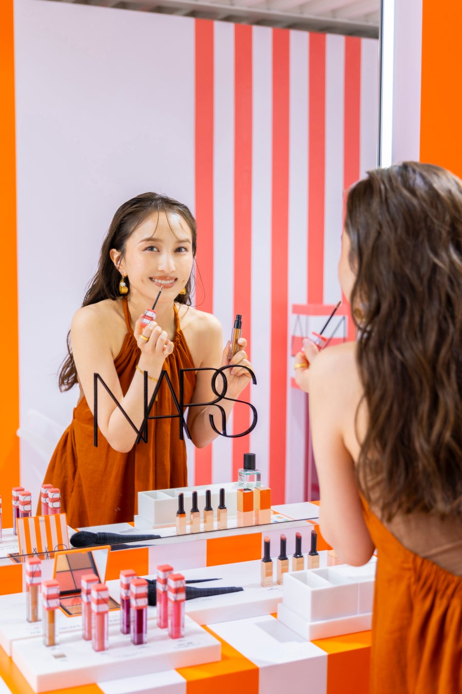 会期中は、最新コレクション「THE HOT ESCAPE COLLECTION」の先行発売に加え、ベストコスメを多数獲得しているNARSの人気アイテム「アフターグロー コレクション」や「ライトリフレクティング コレクション」を展開。「TRUST YOURSERF-日常から抜け出し、この夏新しい魅力に出会う」をコンセプトに、様々なエクスペリエンスを提供いたします。スタンプラリーやNARSメーキャップスタイリストによるメーキャップアドバイス、そして豪華ゲストによるトークイベントなど、自分だけのサマールックが見つかるエクスクルーシブな体験をお楽しみいただけます。さらに、スタンプラリーをクリアされた方全員に「NARSオリジナルドリンク」をプレゼント。イベント会場限定の購入特典もご用意しております。