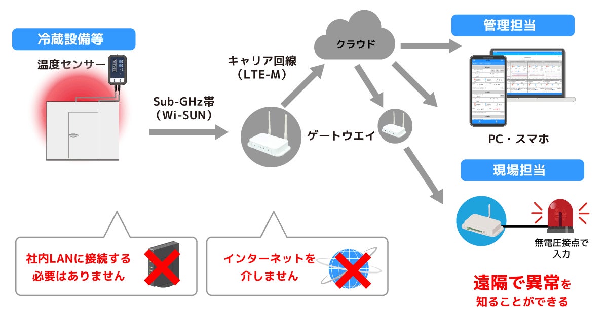 社内LAN接続不要。無線とクラウドによる低コストな遠隔報知を実現