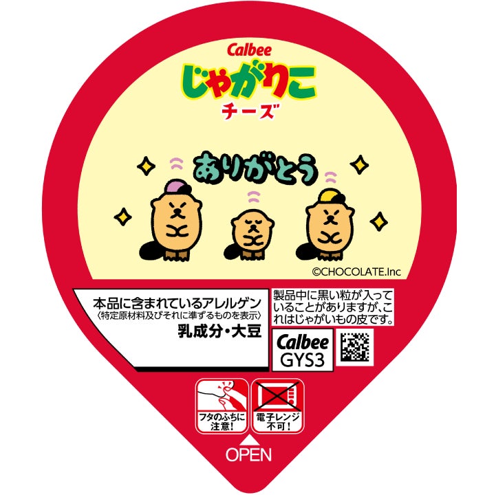 パッケージには「ラッコズ」と共にたかだべあが描く「じゃがりこ」公式キャラクターの「じゃがお」も登場するほか、カップ型商品のフタのデザインは13種類あり、「ラッコズ」たちおなじみの挨拶である「チャッホ!」や、「ありがとう」などのメッセージが記載されています。気分に合わせてメッセージを選んで「あげりこ」することで、家族や友達に楽しく気持ちを伝えられます。