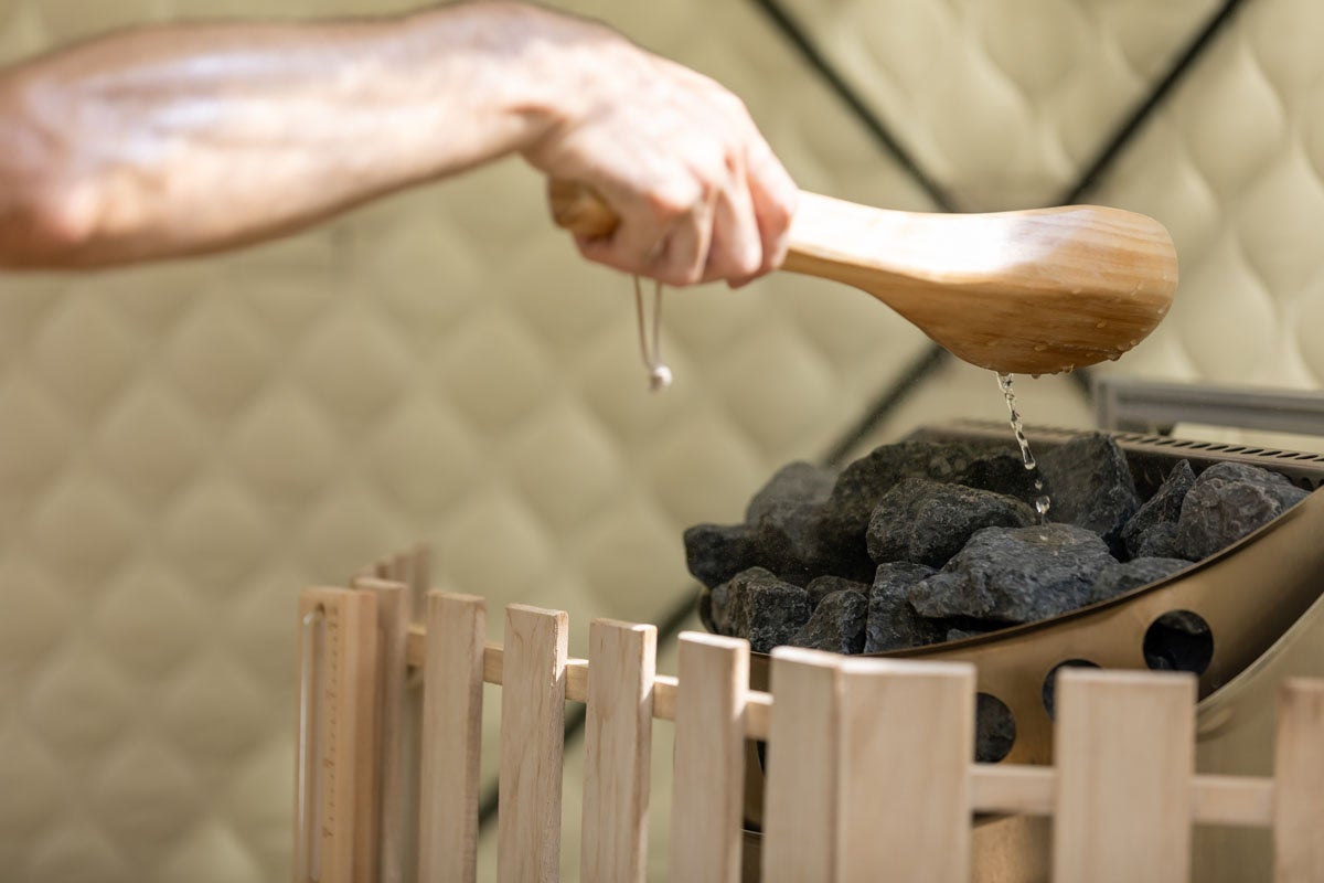 「ロウリュ」とは、熱したサウナストーンに水をかけて蒸気を発生させること。それにより湿度が上がり、体感温度を上げることができます。お好みでセルフロウリュも楽しんでみましょう。
