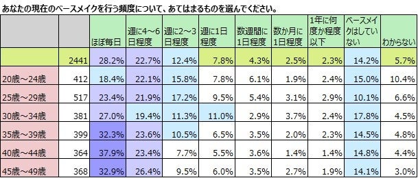 当社の調査ではコロナ禍以降、ベースメイクをしない女性が増えているものの、