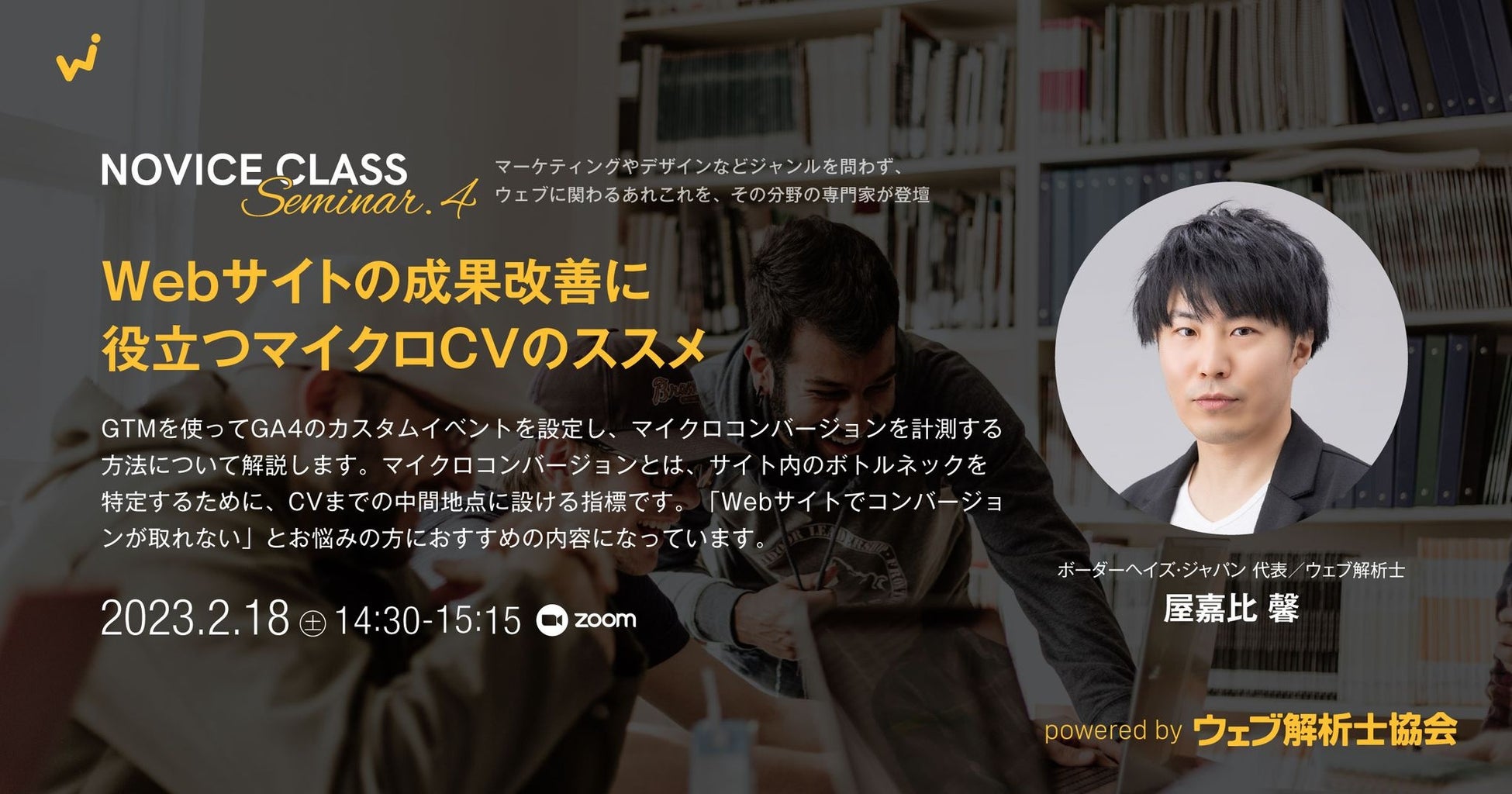 2023/2/18(土)14:30 - 15:15 【Novice Class セミナー④】【無料】Webサイトの成果改善に役立つマイクロCVのススメ