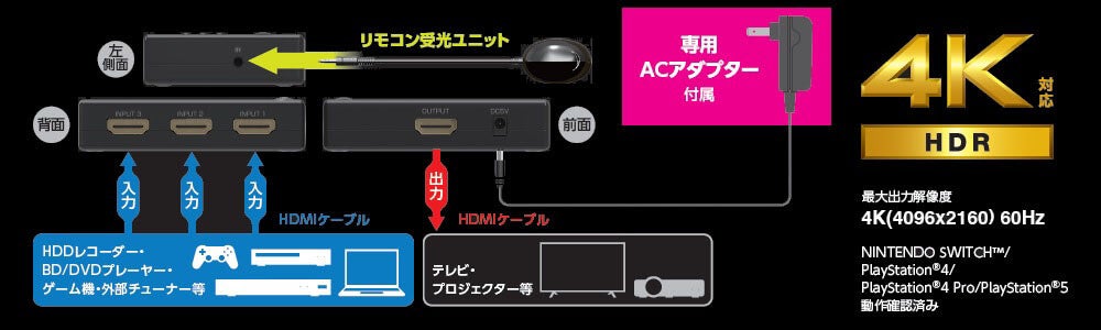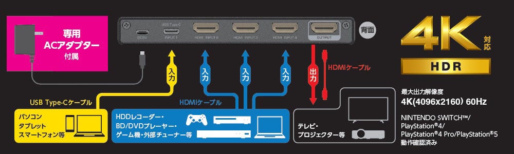 HDMI端子不足を解消し、4K映像が楽しめる!