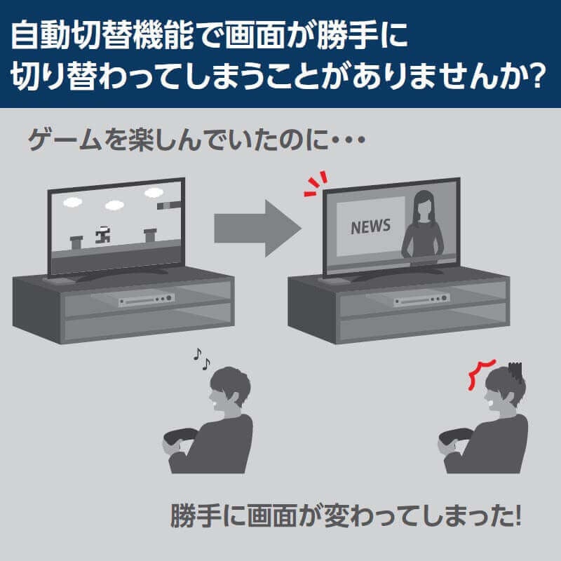 - [共通特長] 勝手に切り替わらない“完全手動切替”タイプ、便利なリモコン付き!