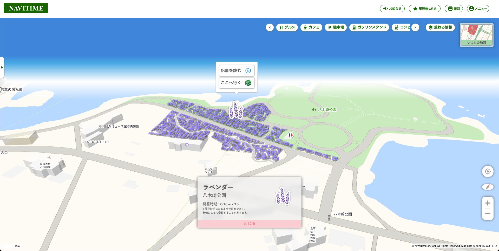 『NAVITIME』Web版内の地図画面右上から「お花畑マップ」を選択すると表示されます。