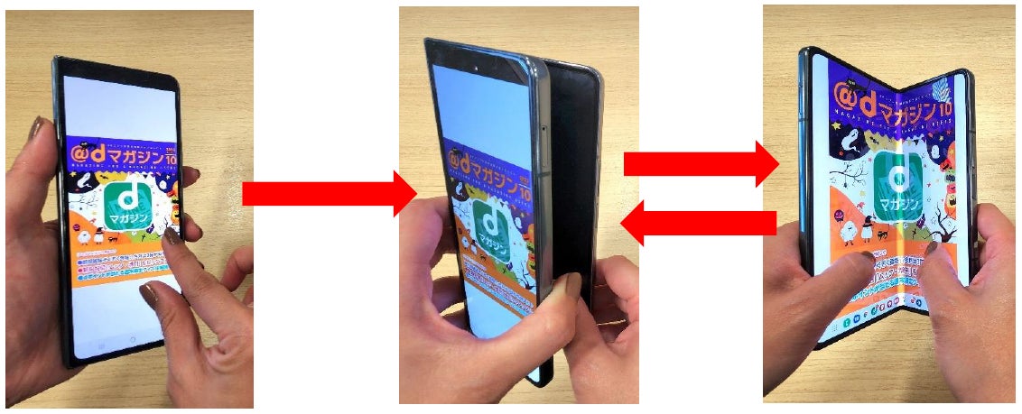 さらに、この度、ドコモの電子雑誌の定額読み放題サービス「dマガジン」が折りたたみスマートフォンでも快適にご利用いただけるようアプリ改善が行われ、Galaxy Z Foldシリーズで今まで以上に便利にご利用いただくことが可能になりました。また、新製品「Galaxy Z Fold4」で新たに追加されたタスクバーやジェスチャーによる画面分割と合わせてご利用いただくことで、より折りたたみスマートフォンならではの体験や魅力をお楽しみいただけます。