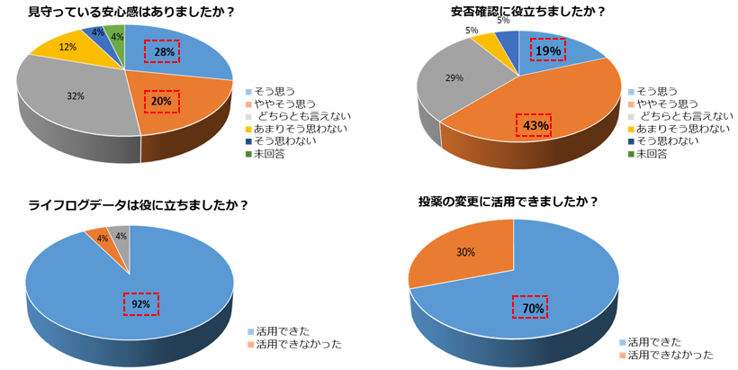 また、従来「定性的な観察結果」として得ていた睡眠情報が「定量的な連続情報」となって得られることで、在宅における患者の睡眠サイクルの把握につながり、患者や家族にとっても在宅生活をつづける上での安心材料になることが分かりました。医療従事者側も、独居や認知症等で本人・家族からの正確な情報収集が困難である場合でも、睡眠に関わる療養上の課題が明確になり、処方を含むケアプランの変更に役立てることができ、在宅におけるケアの質の向上にもつながったと考えられます。