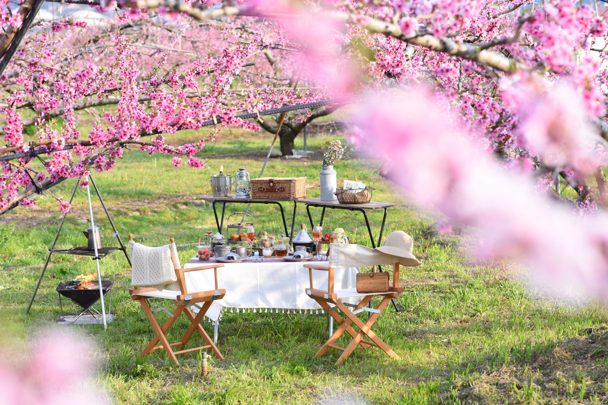【星のや富士】桃に囲まれた特別席で優雅に花見を堪能する「桃源郷グランピングランチ」を1日1組限定で今年も開催|期間:2024年3月20日~4月10日