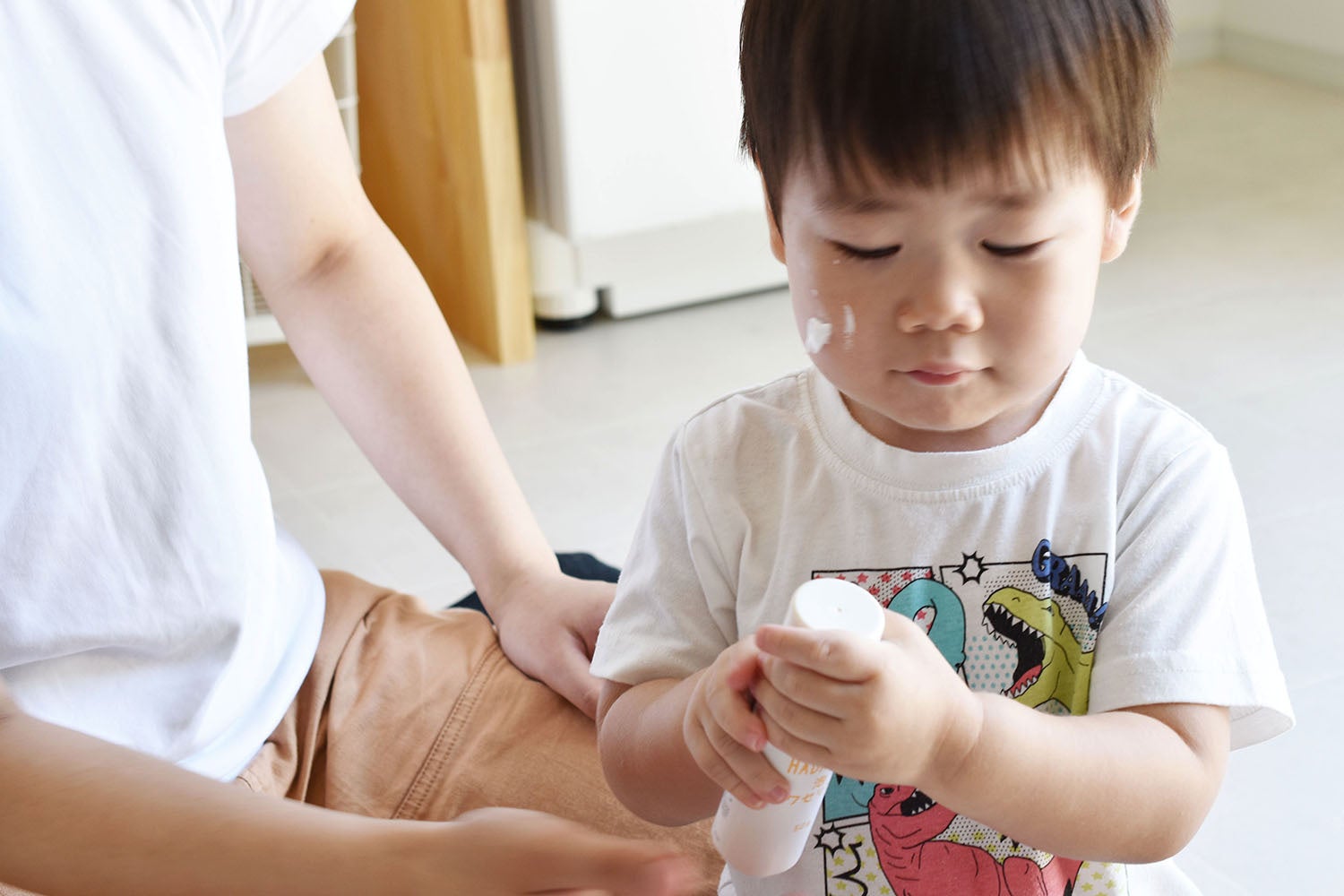 クリームだとどんどん手から滑り落ちていっておもちゃや室内がベタベタになっていたのですが、泡で出てくるので手にちゃんと残ってくれて自分で上手に体に塗ることが出来ていました。