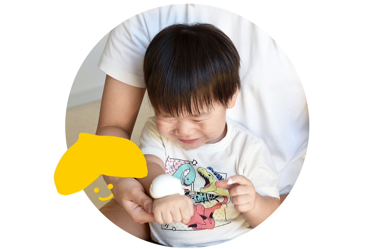 濃厚もちもち泡なので、こぼさず楽しく自分で塗れていました。