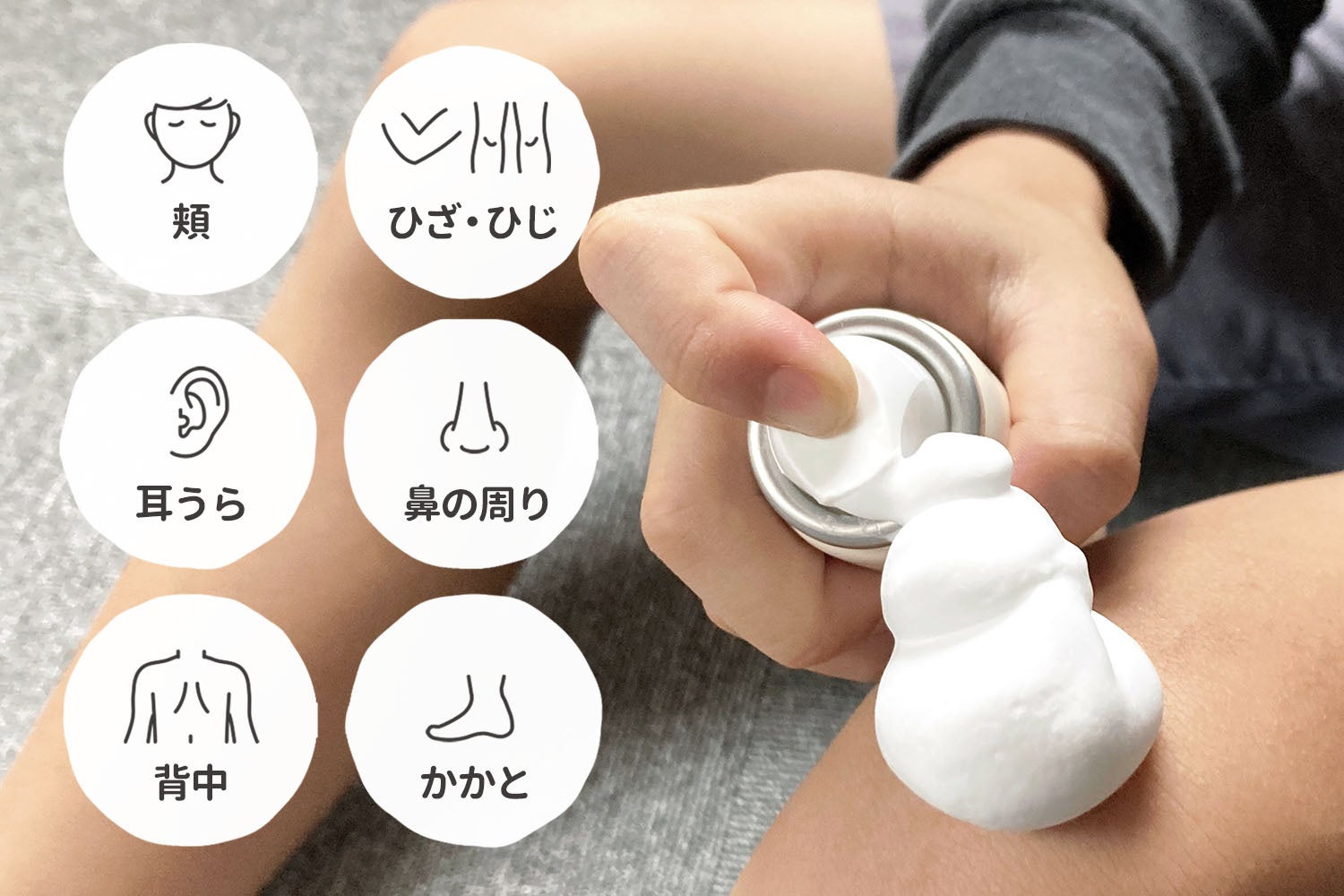 カサカサが気になる、頬、ひざやひじ、耳うら、鼻の周り、背中やかかとにと全身にどうぞ。