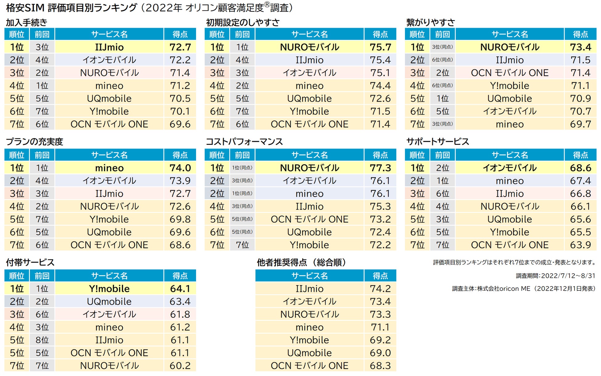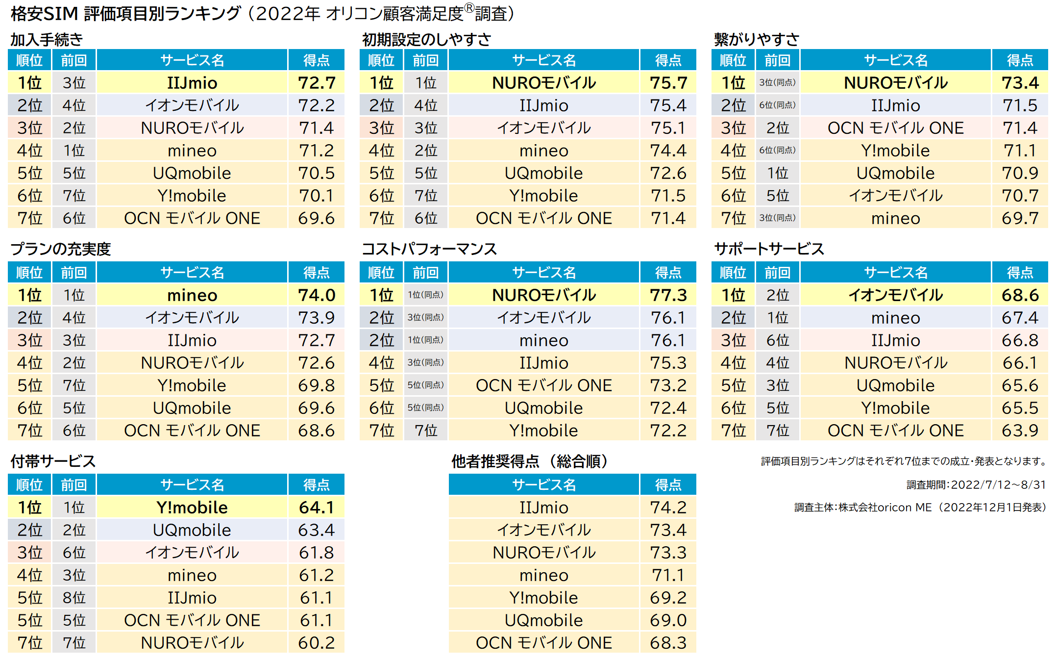 - 《調査概要》 2022年 オリコン顧客満足度®調査 格安SIM/格安スマホ