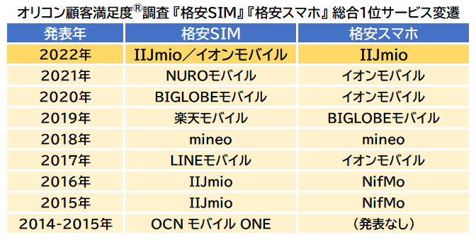 《2022年 オリコン顧客満足度®調査 格安SIM/格安スマホ 総合1位 IIJmio》