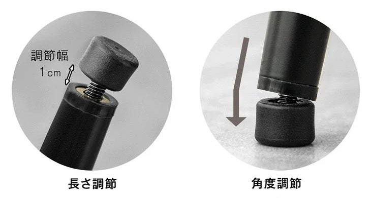 先端を回すことで長さの微調整が可能なため、設置する床面の凹凸に対応し、安定感のある座り心地を保ちながら床へのダメージを軽減します。