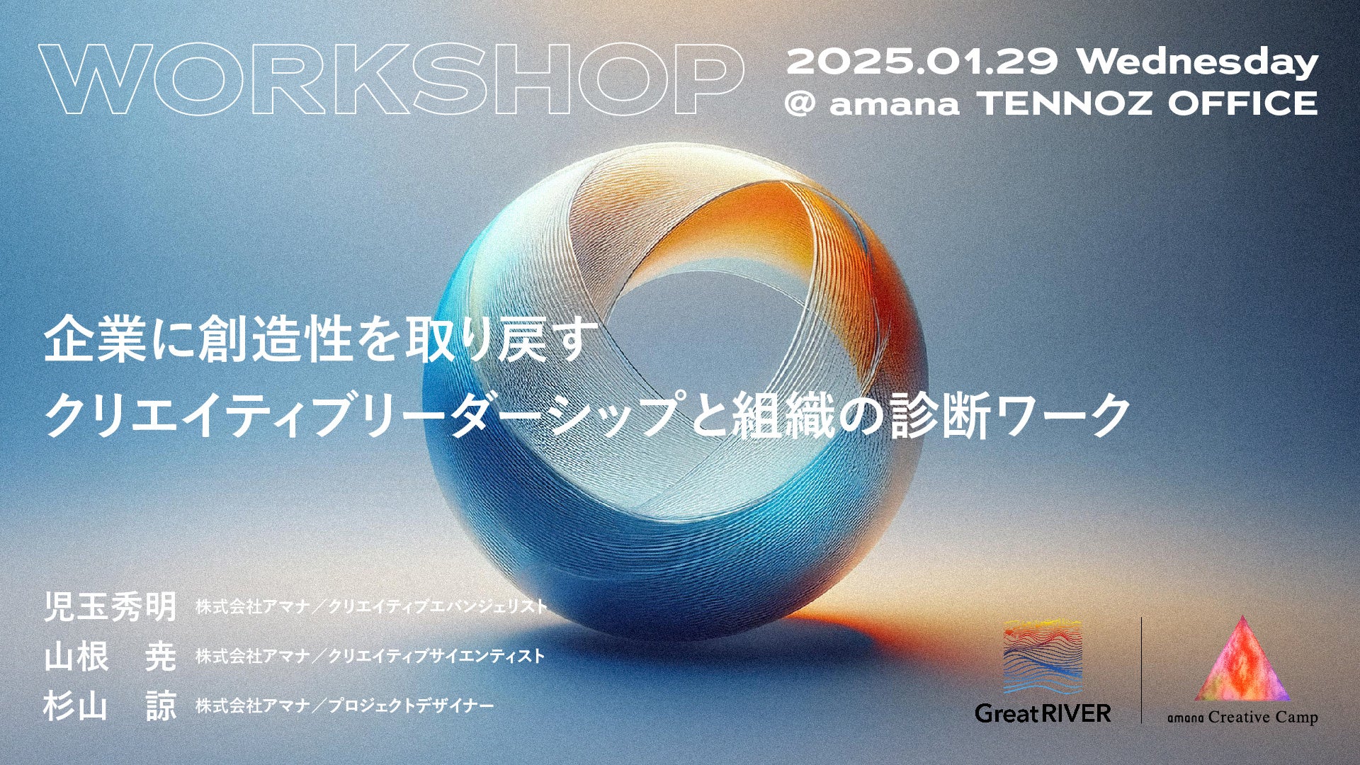 2025年1月29日(水)ワークショップ開催のお知らせ「GreatRIVER × amana Creative Camp|企業に創造性を取り戻す クリエイティブリーダーシップと組織の診断ワーク」