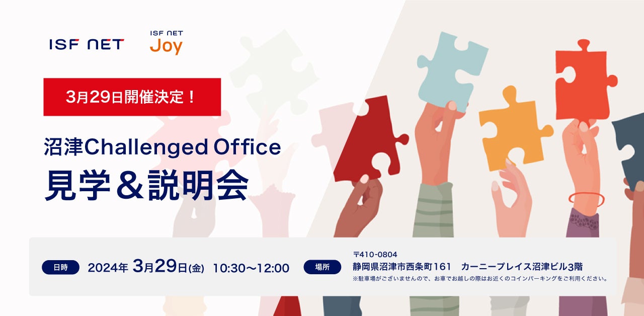 2024年3月29日(金)に株式会社アイエスエフネット 沼津支店にて、チャレンジドオフィス見学&説明会を開催し、障がい者雇用のポイントや課題についてご説明します。